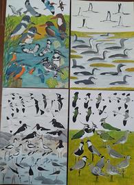 Dipinti originali autografi dell'artista Nikiforos, raffiguranti soggetti ornitologici appartenenti all'avifauna europea.