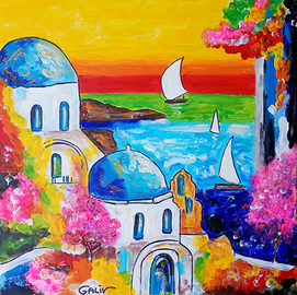 Porta l'incanto delle Cicladi in casa tua con questa splendida coppia di opere firmate da me, il pittore Galiv.
