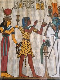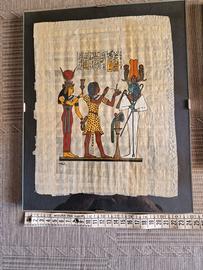 Lotto 3 quadri con papiri egiziani, acquistati in Egitto. I due più piccoli misurano 30 X 24; il più grande 40 X 30. Prezzo un po' trattabile.