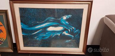 - quadro litografia originale con cavallo azzurro misure 100 cm x 78 cm