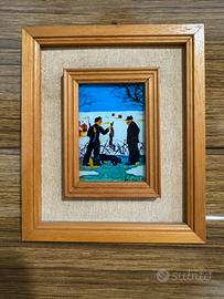 Tecnica: pittura su vetro, cornice in legno con passpartout in stoffa.