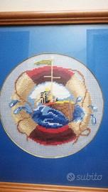 Quadri realizzati ricamati a punto croce Quadro veliero 45x58 cm Quadro salvagente 37x37 cm
