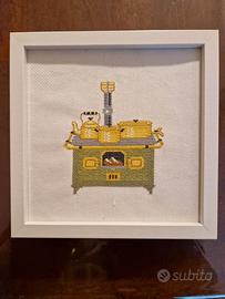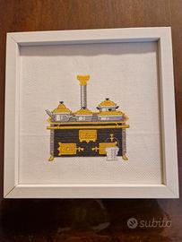 Vendo 4 quadri (ma anche solo alcuni singolarmente) ricamati su stoffa a mano a punto croce con cornici bianche e appendi quadro (non c'è il vetro).
