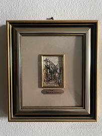 Realizzati con tecnica mista su metallo inciso e smaltato, montati in eleganti cornici classiche dorate/argentate con passepartout in tessuto. Ideali per arredamento vintage, collezionisti o amanti del Friuli.