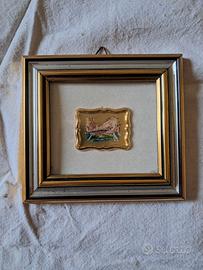 Coppia quadri con riproduzione in cromolitografia e cornice in legno naturale, misura cm. 13x12 Con certificato di garanzia