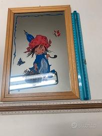 Coppia di simpatici e allegri quadretti a specchio per la camera dei ragazzi o dei bimbi, montati su legno naturale. SpediZIONE con poste italiane