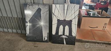 vendo 2 quadri con stampa in bianco e nero su pannelli in legno Flat Iron Building e ponte di Brooklyn a New York aggancio posteriore Perfetto stato