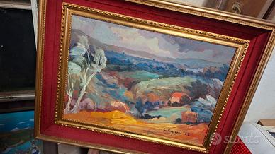 Quadri su tela , i primi tre sono di Antonio Cedamo, l ultimo di Ragogna. Il quadro con tonalità arancione misura 50 ×70 ,tonalità azzurra 80×70, quello con le tonalità scure ( urlo) 50×60