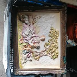 Vendo quadro di padre pio ricamato a mano.... Più un quadro in cemento più quadro frutta d epoca.... Accetto offerte
