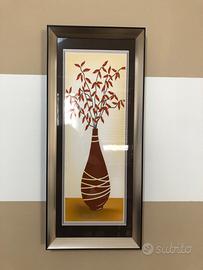 Tre quadri in plastica che rappresentano dei vasi con fiori. I due esterni sono uguali e diversi da quello centrale. Presentano delle piccole imperfezioni, impercettibili da lontano.