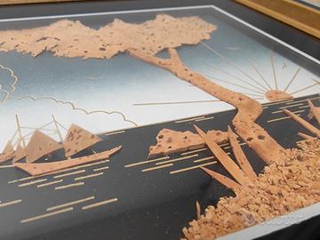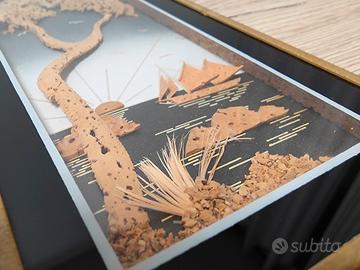 Vendo coppia di quadri vintage realizzati con tecnica decorativa su sughero, completi di cornice originale in legno e vetro.