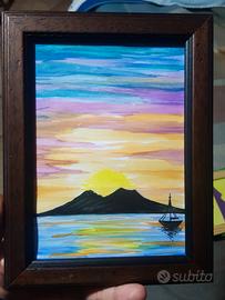 Come da foto. Esempi di quadretti varie dimensioni. Su tela, e cartoncini bristol, fogli carta handmade. Colori acrilici e watercolor. Vesuvio, Napoli,golfo castel dell'ovo, paesaggi. Artigianato made in Naples.Per qualsiasi informazione non esitate a contattarmi.