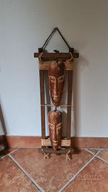 Vendo set di 3 quadri etnici con maschere africane in legno intagliate a mano, montate su cornici in legno con corde naturali.