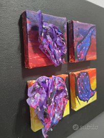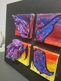 Vendo splendido quadrittico dipinto (no stampa) "Le miniature di aRDi - Farfalla allo specchio"