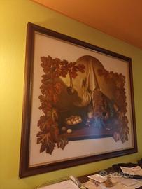 come da titolo vendo quadro 160x140, olio su tavola, con cornice esterna e vetro rappresentante natura morta