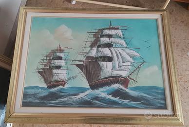 Raffigurati paesaggio, veliero e mare