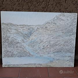 Quadro: 40 x 30 lago delle dolomiti 1980 strappo d'affresco