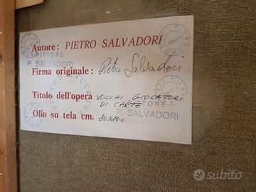 Vendo quadro di Pietro Salvadori, titolato "Vecchi giocatori di carte", olio su tela di dimensioni 80x100cm, completo di cornice con vetro (dimensioni totali con cornice 100x120cm) . Ottime condizioni