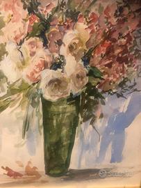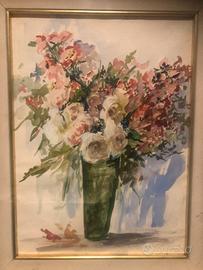 Quadro ‘900 fiori con vaso, acquerello Autore: Pinina Moro Misure circa 50 x 60 cm Altri quadri disponibili a tema natura morta