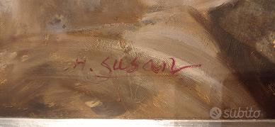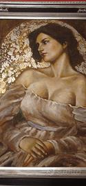 Quadro dipinto ad olio su tela completa di cornice colore argento e nero. Misura 113 cm x 82 cm