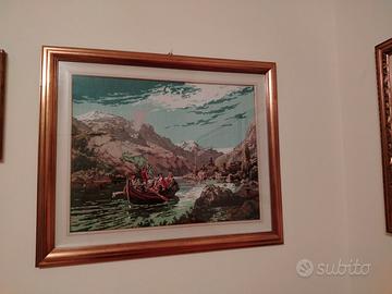 Quadro a mezzo punto totalmente fatto a mano, cornice in legno dorato, ottime condizioni, cm 90 per cm 75