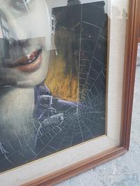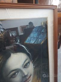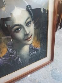 Quadro con autoritratto di donna a pastello di Ferdinando Monzio Compagnoni. Originale e in buone condizioni!