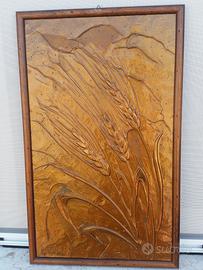 Misura 63.50 x 38.50. Quadro in rilievo in rame illustrante una spiga.