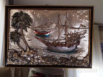n. 2 quadri a specchio cm 72 x 58 con bassorilievo in argento cm 34 x 24. vendibili separatamente euro 25 cadauno