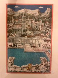 Quadro Acquaforte del Pittore scomparso Galeazzo Viganò raffigurante Spalato. Misure cornice cm 57 x 77 Misure dipinto cm 32 x 48