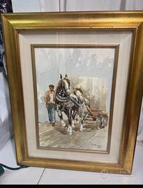 Quadro acquarello di Donati Bisio, anno 1968 compreso di cornici in legno, misure 58x78 circa
