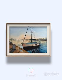 Quadro acquerello barca tramonto