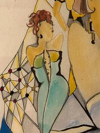 Quadro (acquerello firmato) stile Art Déco/fashion