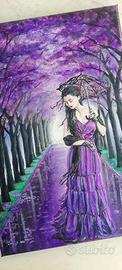 "Amethyst lady", Quadro 30x20 cm, dipinto a mano ad acrilico su tela. Non necessita di cornice, avendo i bordi dipinti. Atmosfera gotica.