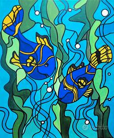 Quadro acrilico su tela, paesaggio marino firmato