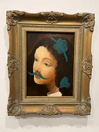 Lavoro ad olio creativo e contemporaneo (non è una stampa) arricchito da una splendida cornice in legno dorato. Quadro piccolo realizzato in acrilico su tavola.