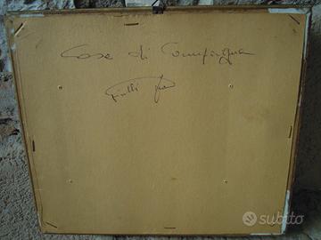 piccolo quadro ad olio con cornice e vetro firmato dall'artista Franco Girelli sia fronte che retro, dal titolo case di campagna.