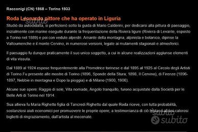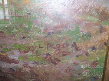 grande e importante quadro di Leonardo Roda, firmato in basso a destra; la tela, senza cornice, misura cm. 100x75. Bella cornice dorata coeva con targhetta in ottone.