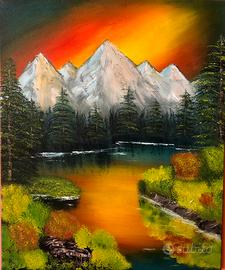 Quadro ad olio su tela paesaggio di montagna