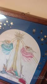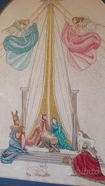bellissimo quadro ricamato a mano raffigurante la natività. misure 80cm x 56cm