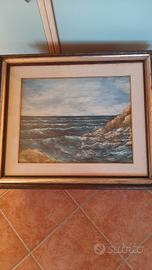 quadro "Marina" ad olio su tela ( o su tavola) con cornice in legno di dimensioni cm.59x70.