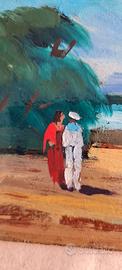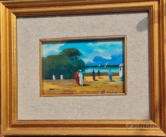 Alfredo Stengher (Livorno, 1920–2000) "Lungomare con marinaio" olio su tavoletta 10x15 con cornice 29x25.. E' stato un pittore autodidatta toscano, noto per il suo stile post-macchiaiolo e impressionista. Prediligeva paesaggi toscani, marine e figure, caratterizzati da una stesura rapida, corsiva e un forte senso del colore, spesso lavorando su tavola (faesite/masonite) con grande immediatezza lirica. Artsper +2 Ecco i punti chiave su Alfredo Stengher: • Stile e Tecnica: Autodidatta, influenzato dalla scuola dei Macchiaioli e dagli impressionisti, Stengher è noto per la sua pittura immediata, definita "corsiva", che cattura vibrazioni di luce con pochi tocchi di colore. • Temi: La sua produzione si concentra sul paesaggio toscano, scene di vita, marine e ritratti, con una visione naturalistica e lirica. • Supporti: Molte delle sue opere, specialmente negli anni '60/'70, sono dipinte a olio su pannello di faesite o masonite. • Carriera: Attivo principalmente a Livorno, ha partecipato a diverse mostre personali e collettive, ottenendo buoni riscontri di critica.