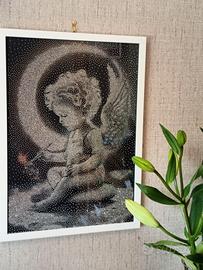 Quadro realizzato a mano con strass brillanti in due tonalità: crystal e champagne, applicati su vetro trasparente. L'immagine rappresenta un angelo in stile elegante e spirituale, perfetto per arredare spazi con energia positiva e luce. La cornice è in legno naturale, fatta su misura da artigiano, solida e raffinata. L'effetto brillante degli strass crea riflessi unici a seconda della luce nella stanza. 📏 Dimensioni: 30х40 cm] 🖐 Tecnica: applicazione manuale di strass su vetro 🪵 Cornice: legno artigianale, già pronta da appendere 📦 Condizione: Nuovo – opera originale fatta a mano 🚚 Spedizione o consegna a mano zona Varese