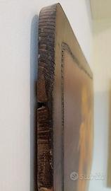 La peculiarità del quadro è di essere stato dipinto su fasciame di imbarcazione.