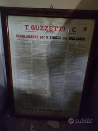 Quadro T-Guzzetti regolamento per il giuco del bigliardo - anni 50 - ottimo stato prezzo da concordare dopo contatto