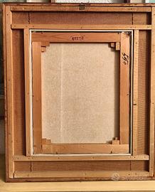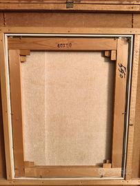 Il quadro è racchiuso un una cornice in legno con interno in tela.
