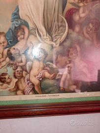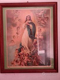 Quadro con cornice in legno con antica immagine dell'Immacolata concezione . Misure 42x50 cm