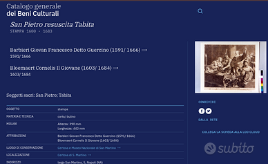 Incisore Bloemaert Cornelis Il Giovane 1603-1684 su disegno del Guercino ,San Pietro resuscita Tabita