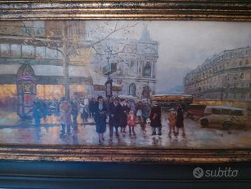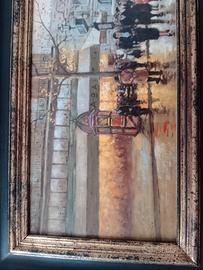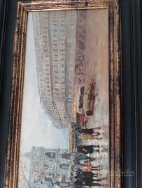 quadro antico ad olio, dipinto su pannello di legno con cornice. Pare che detto pannello sia stato reperito in un vecchio negozio francese. misure 74x32. Non reca né data né firma. ottime condizioni.