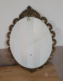 Quadro antico ovale con cornice in ottone decorata e vetro bombato, raffigurante la "Madonnina del riposo", ha luce interna facilmente ripristinabile. In ottime condizioni.