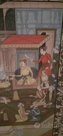 Quadro antico dipinto su tela di seta